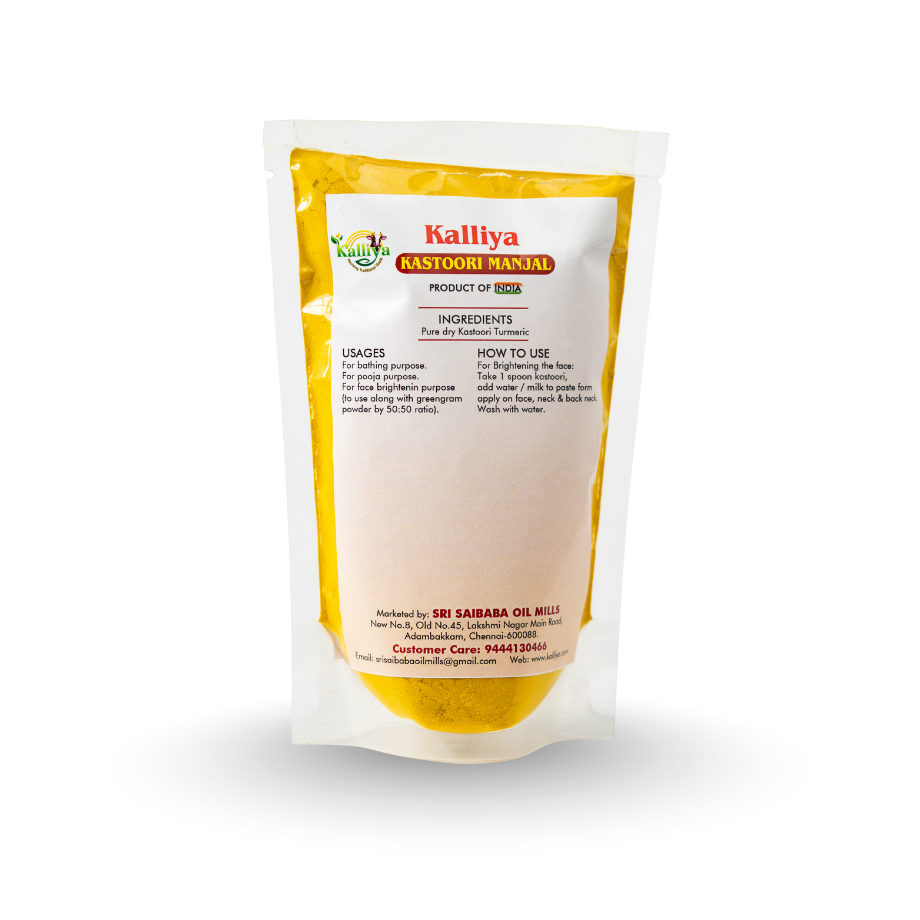 - Crafted to preserve the purity of Kasthuri Manjal, free from additives and artificial ingredients.